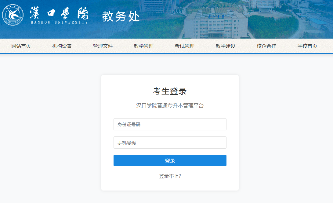 汉口学院普通专升本管理平台:http://zsb.hku.ink/login.asp